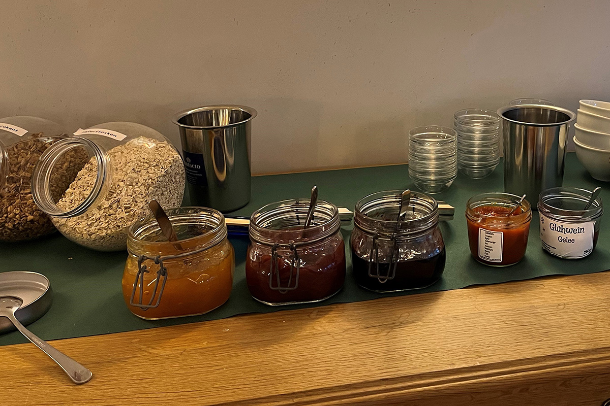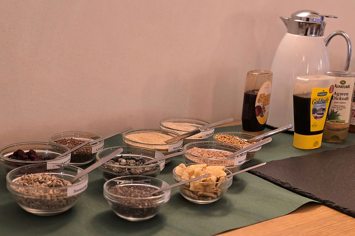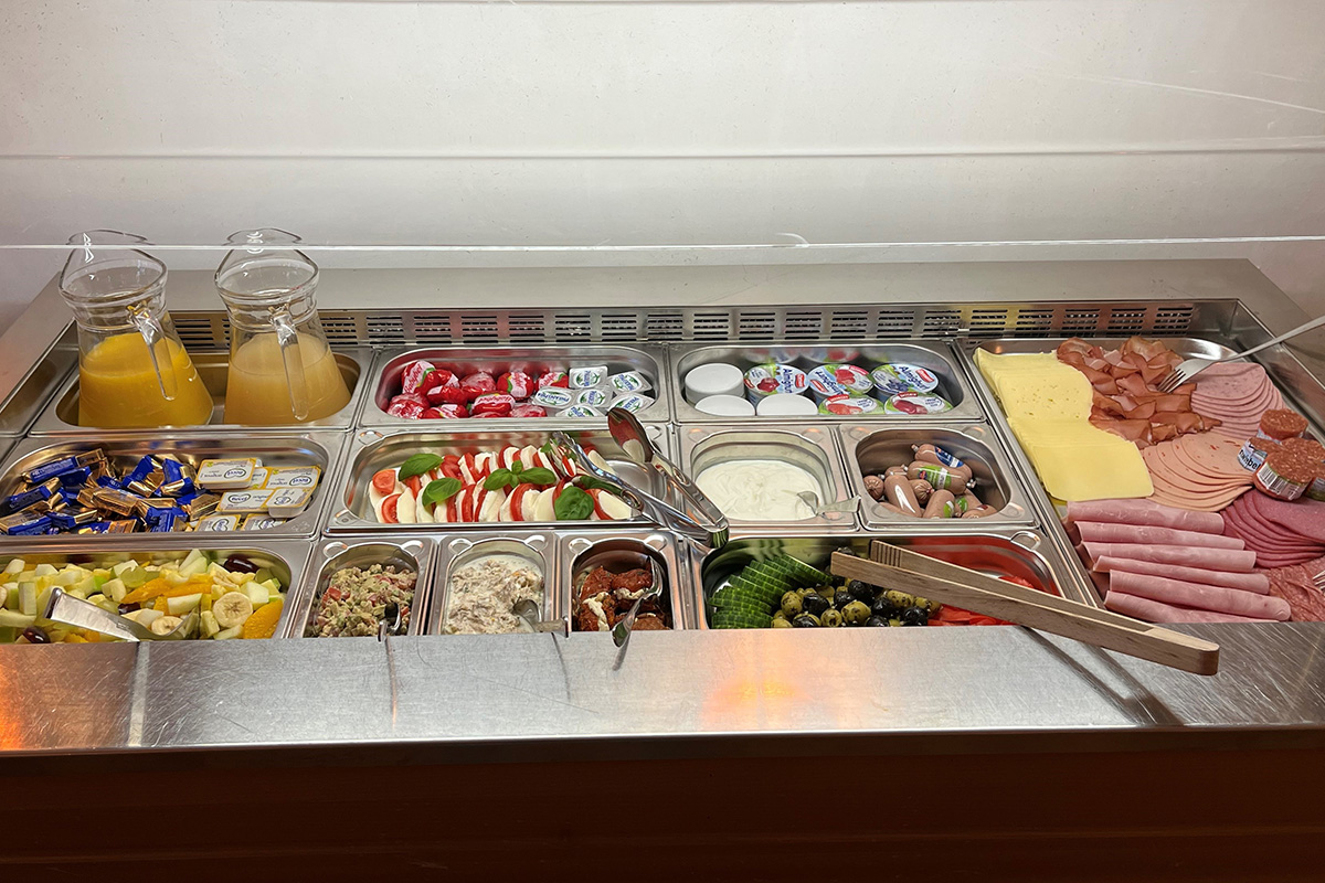 Stärken Sie sich an unserem vielfältigen und gesunden Frühstücksbuffet. Mit Kaffee oder Tee, frisch gebackenen Brötchen vom Bäcker aus dem Ort, Brot, Obstsalat und Säften, verschiedenen Müslis, zahlreichen Wurst- und Käsesorten, Eier, Spiegeleier oder Omelett, süße Brotaufstriche und weitere Köstlichkeiten … bei uns kommen alle Gäste auf ihre Kosten.
